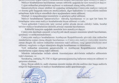 Audit nəticələri təsdiqlənmiş və müvafiq sənədlər şirkətə təqdim olunmuşdur.