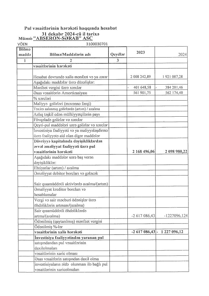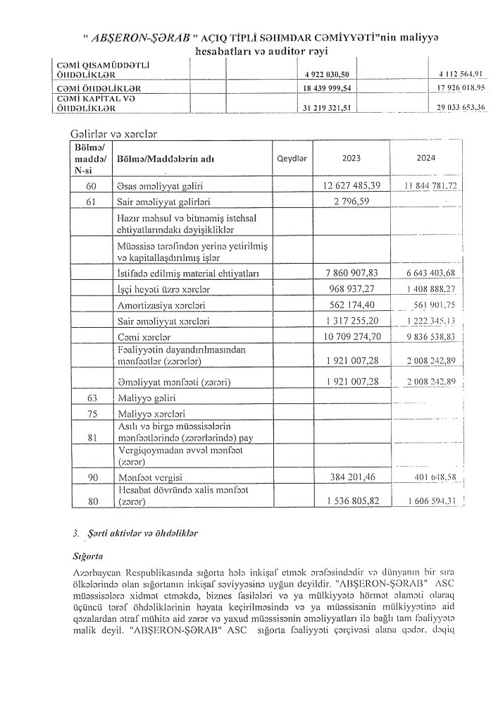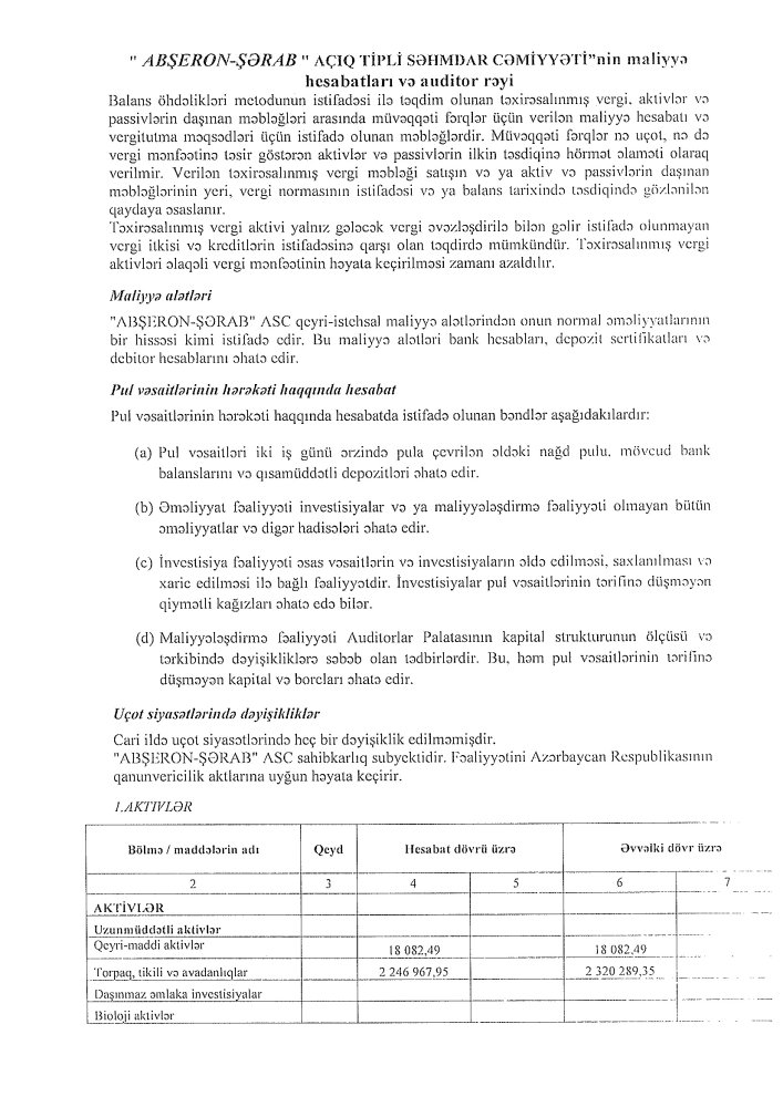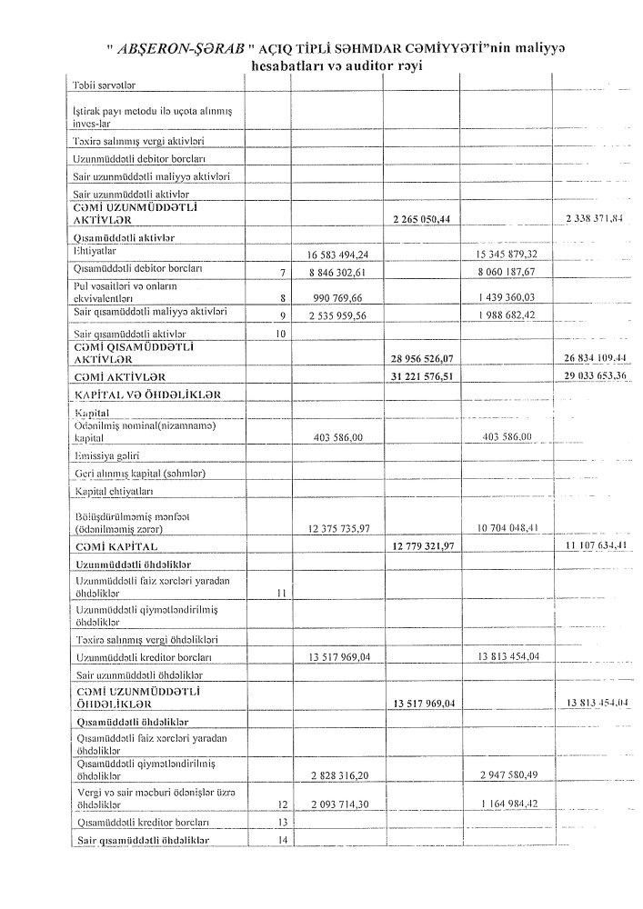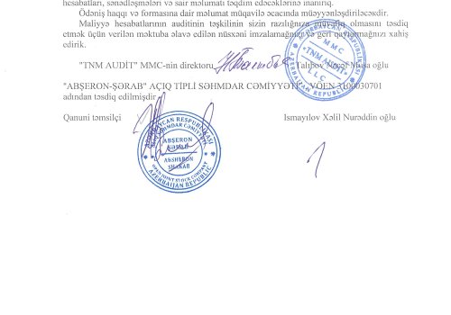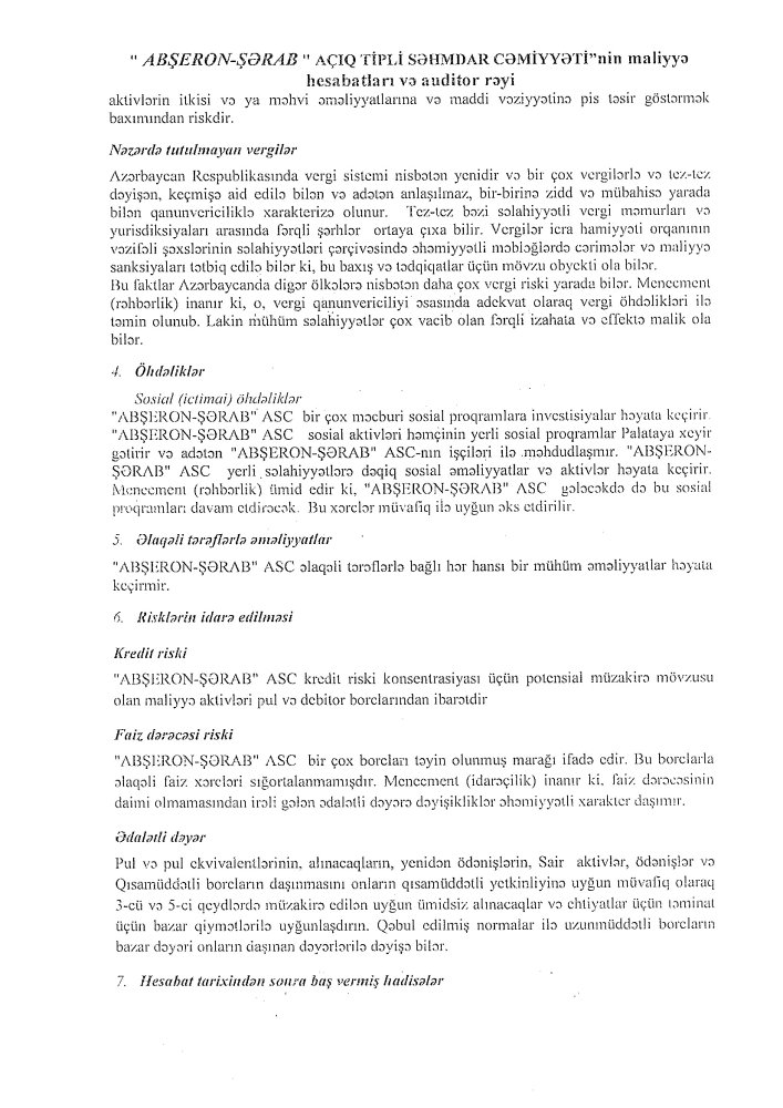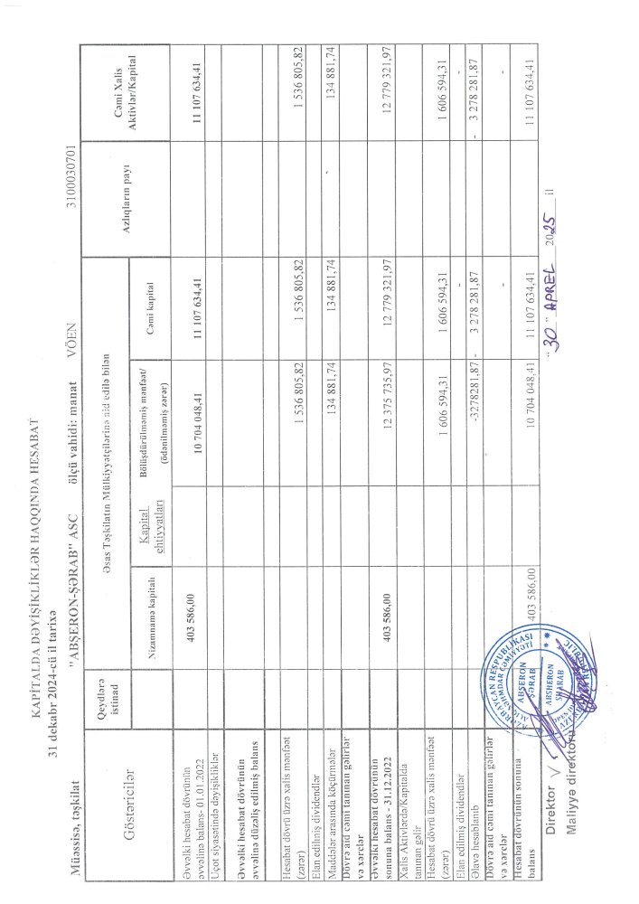 Abşeron-Şərab ASC-nin 2024-ci il üzrə Maliyyə Hesabatları və Müstəqil Auditi Azərbaycan Respublikasının Auditorlar Palatası tərəfindən akkreditə edilmiş TNM AUDİT ASC şirkəti tərəfindən həyata keçirilmişdir.