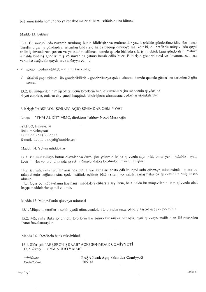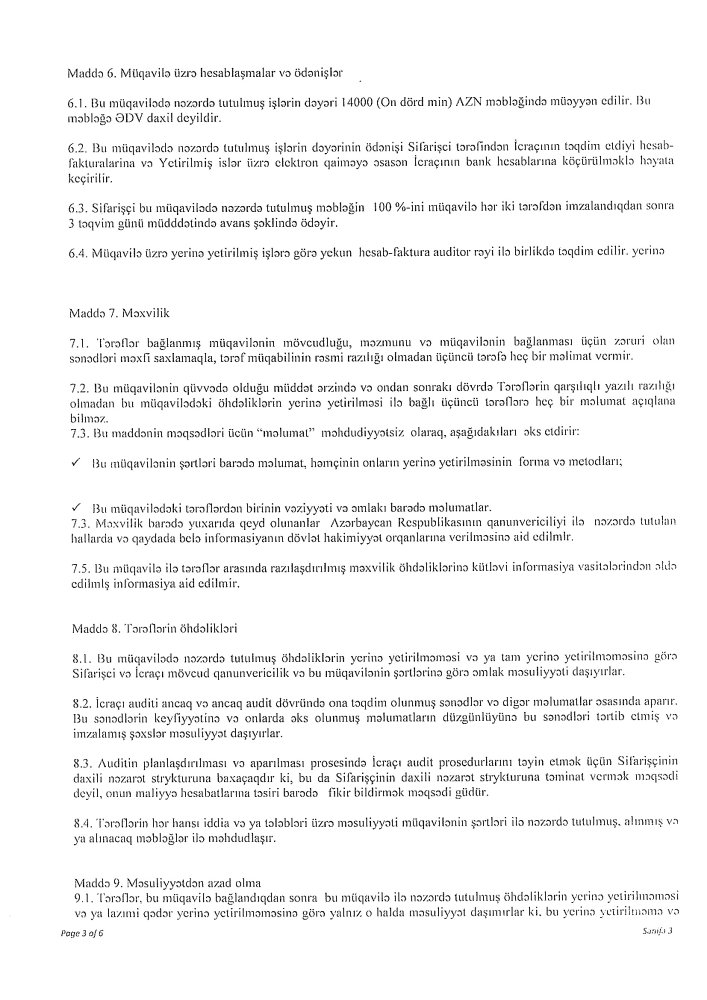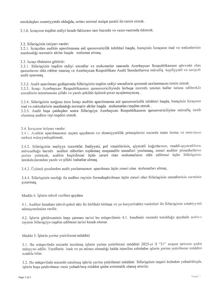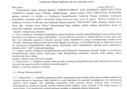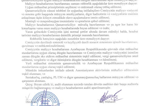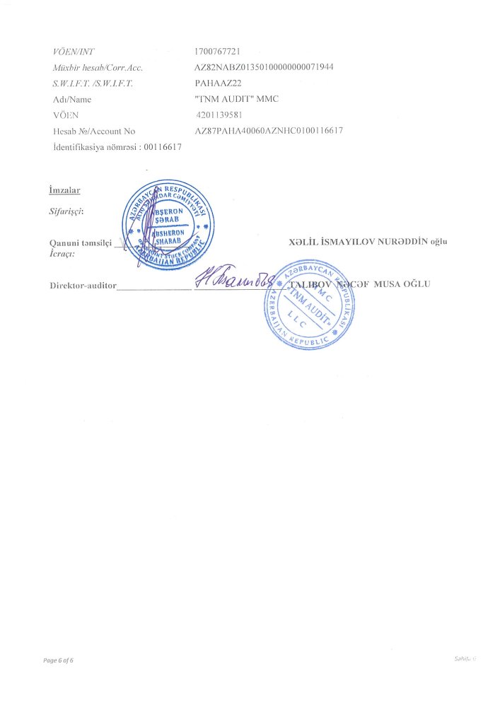 Audit nəticələri təsdiqlənmiş və müvafiq sənədlər şirkətə təqdim olunmuşdur.