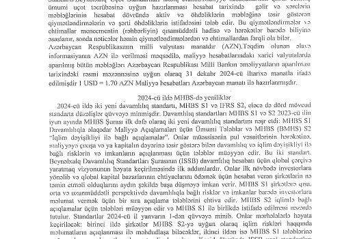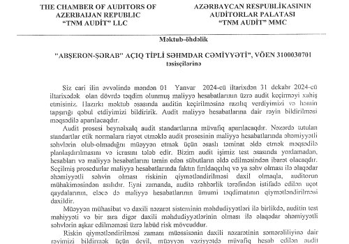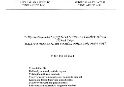 2024-ci il Maliyyə Hesabatlarının Auditi başa çatdırılıb