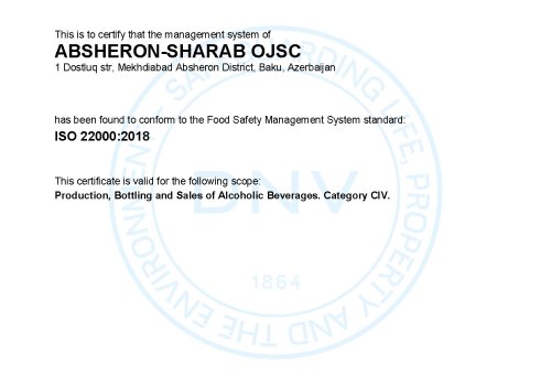 Мы рады сообщить, что система менеджмента компании ABSHERON-SHARAB OJSC успешно прошла аудит и признана соответствующей требованиям стандарта Food Safety Management System — ISO 22000:2018.