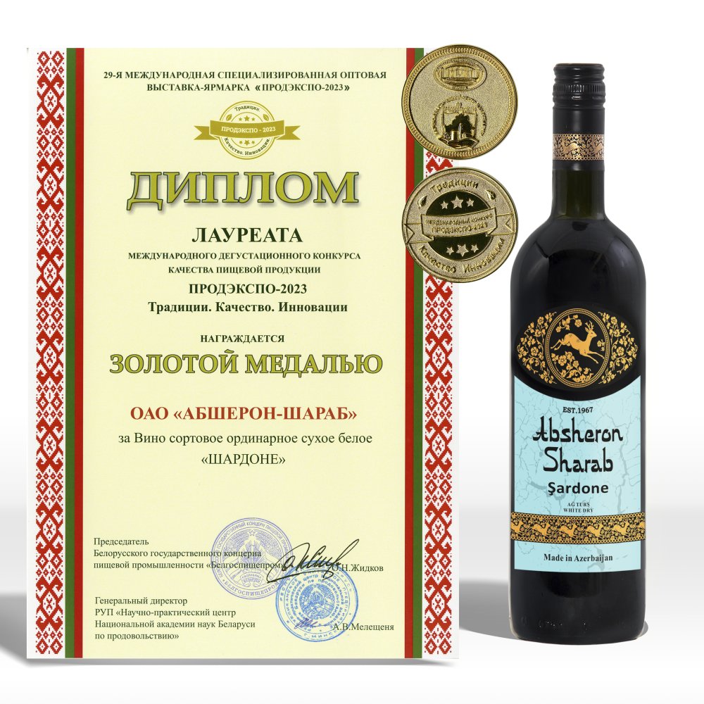 - «Абшерон-Шараб Шардоне», белое сухое вино — золотая медаль