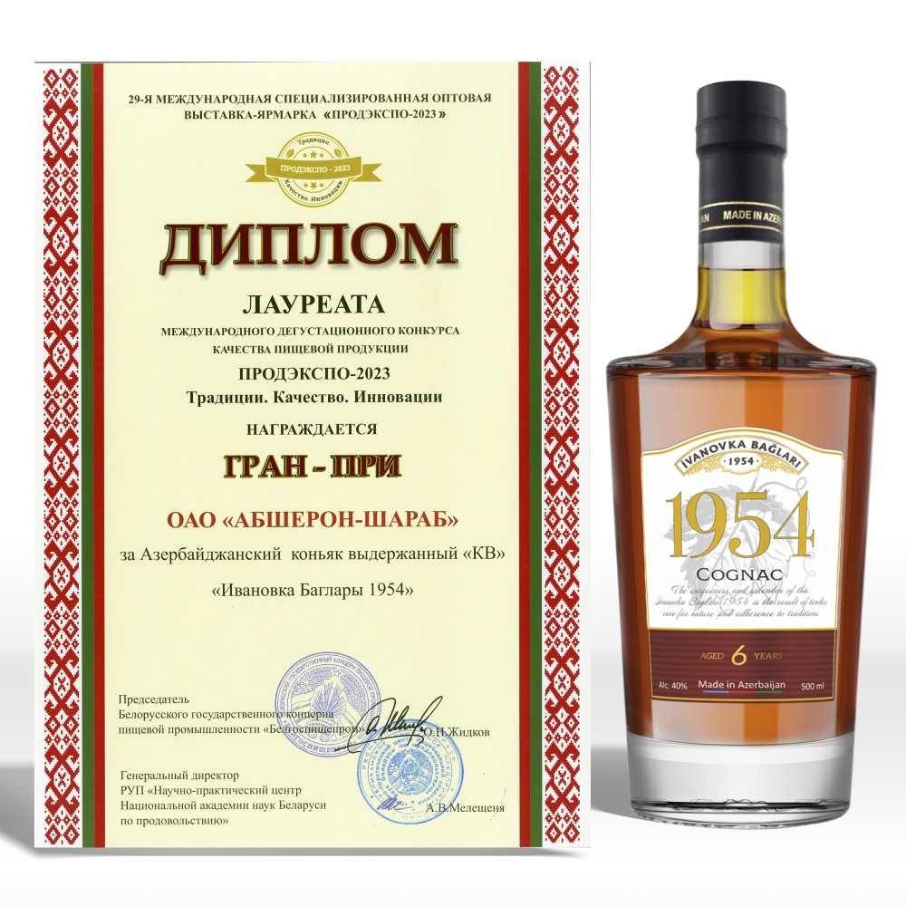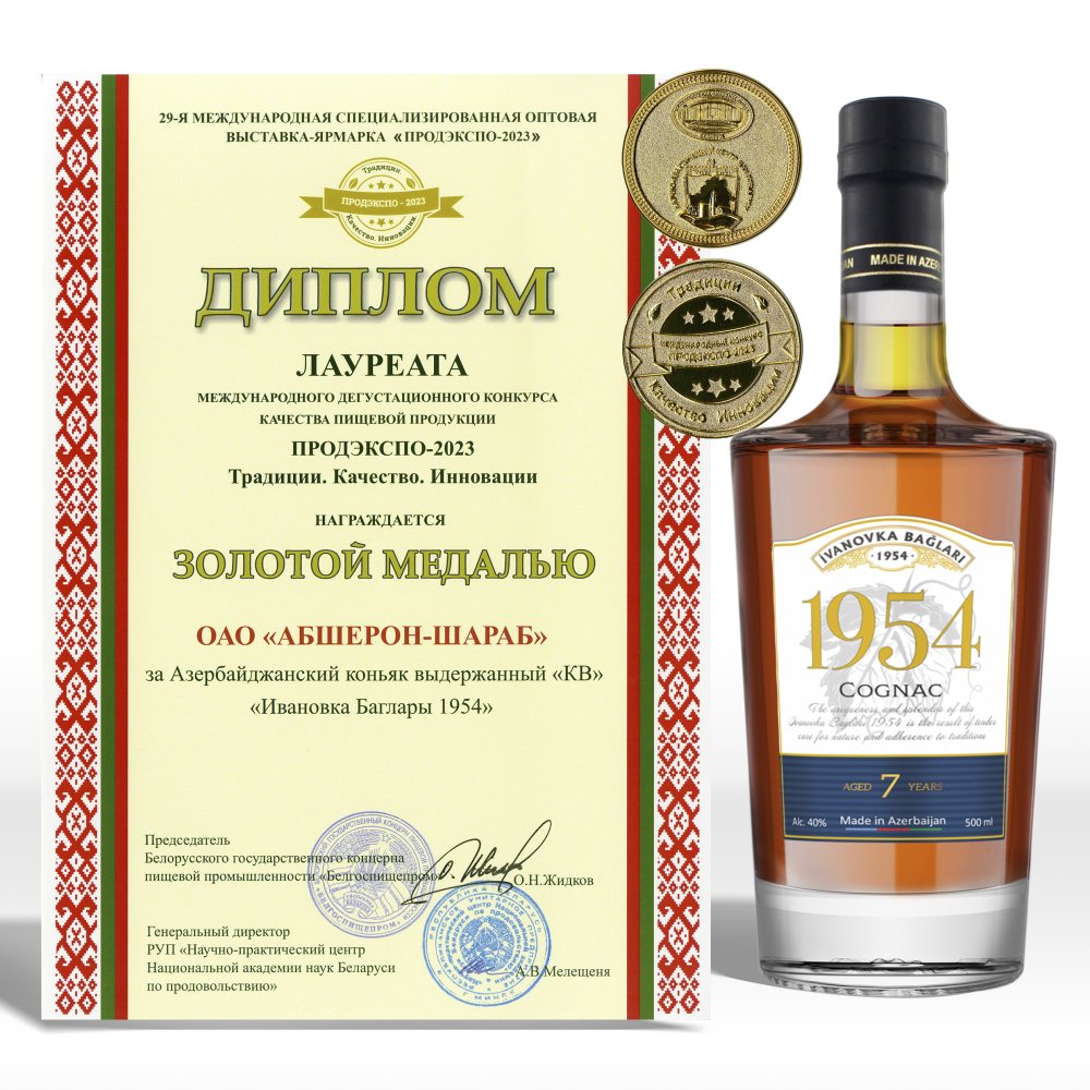 - Коньяки под торговой маркой «Ивановка Баглары 1954» были отмечены жюри в трёх категориях: