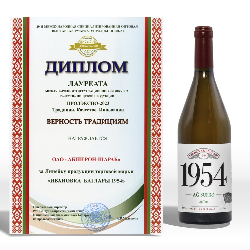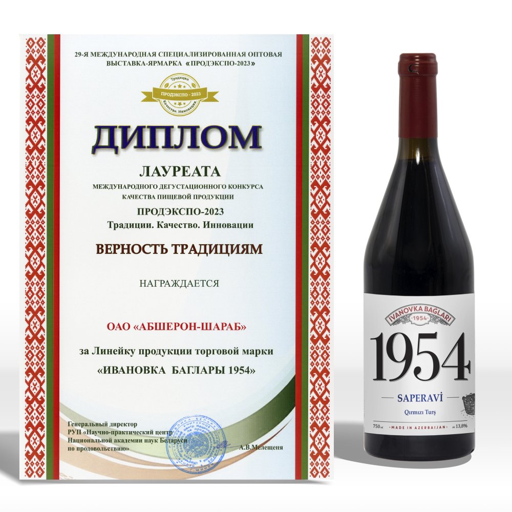 - Вина «Ивановка Баглары 1954» получили диплом лауреата за верность традициям: