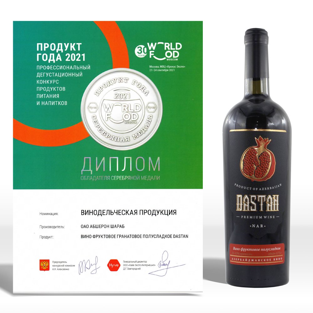Серебряная медаль была присуждена фруктовому полусладкому гранатовому вину «Pomegranate». Нежный и сбалансированный вкус этого вина покорил дегустационную комиссию.